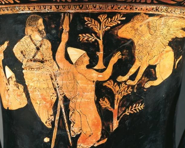 The Sphinx, we learn, had been sent to Thebes by the gods as a punishment for the crimes of the previous King Laius. Setting herself upon Mount Phikion, she ruled over the city through physical and psychological terror.