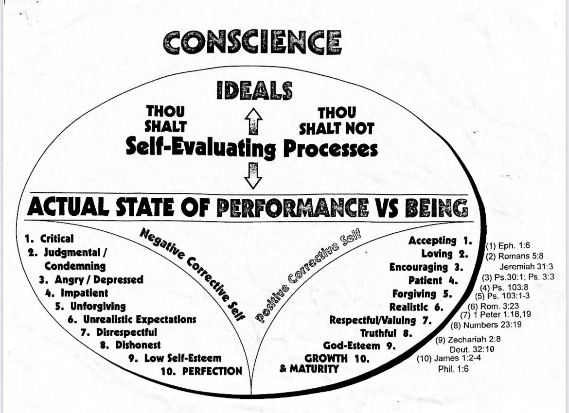 In a prior writing, we began an examination into the critical importance of self-knowledge vs self-deception. And there we introduced what has come to be known as the “Conscience Chart,” a graphic (below) that helps us differentiate in real-time what is actually driving our behavior.